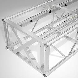 Die Traverse ist für die Aufnahme von 12 x PAR 64, kurz vorbereitet.